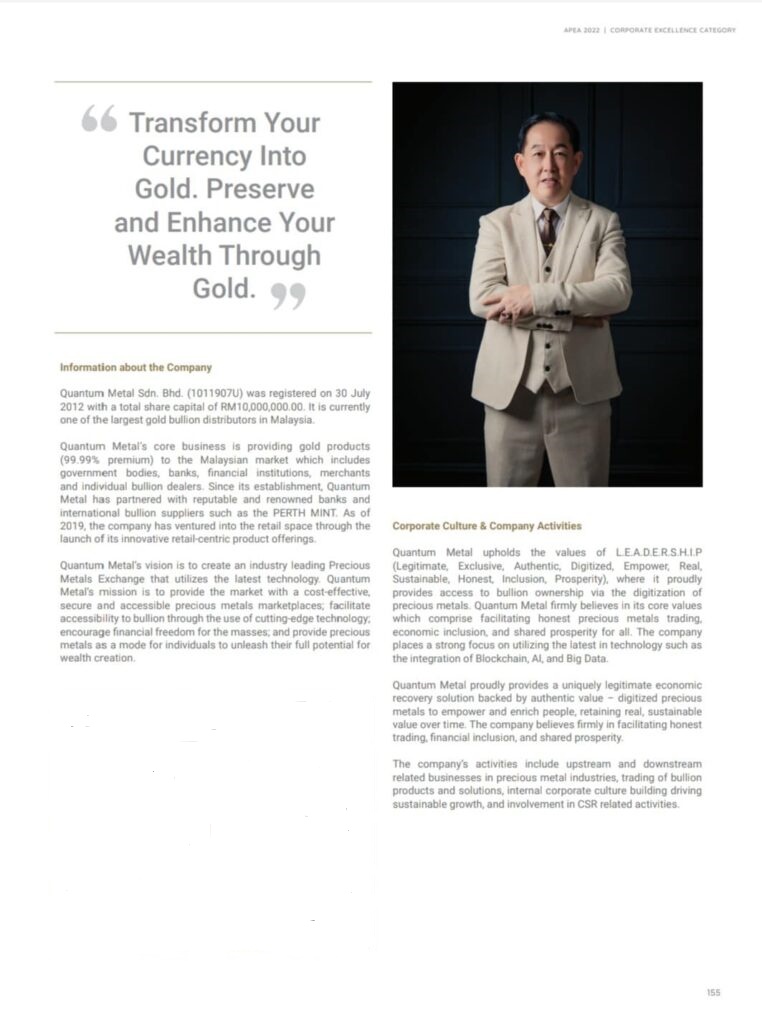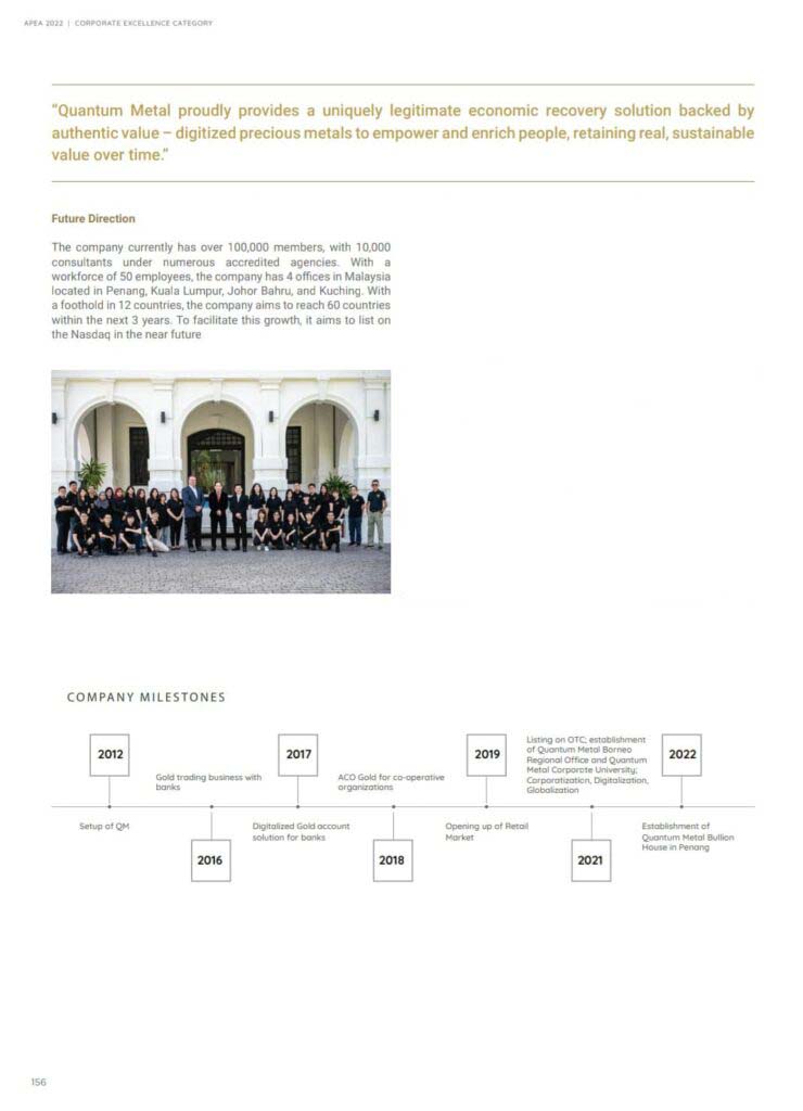 Quantum Metal is one of the award winners of the Asia Pacific Enterprise Awards (APEA).